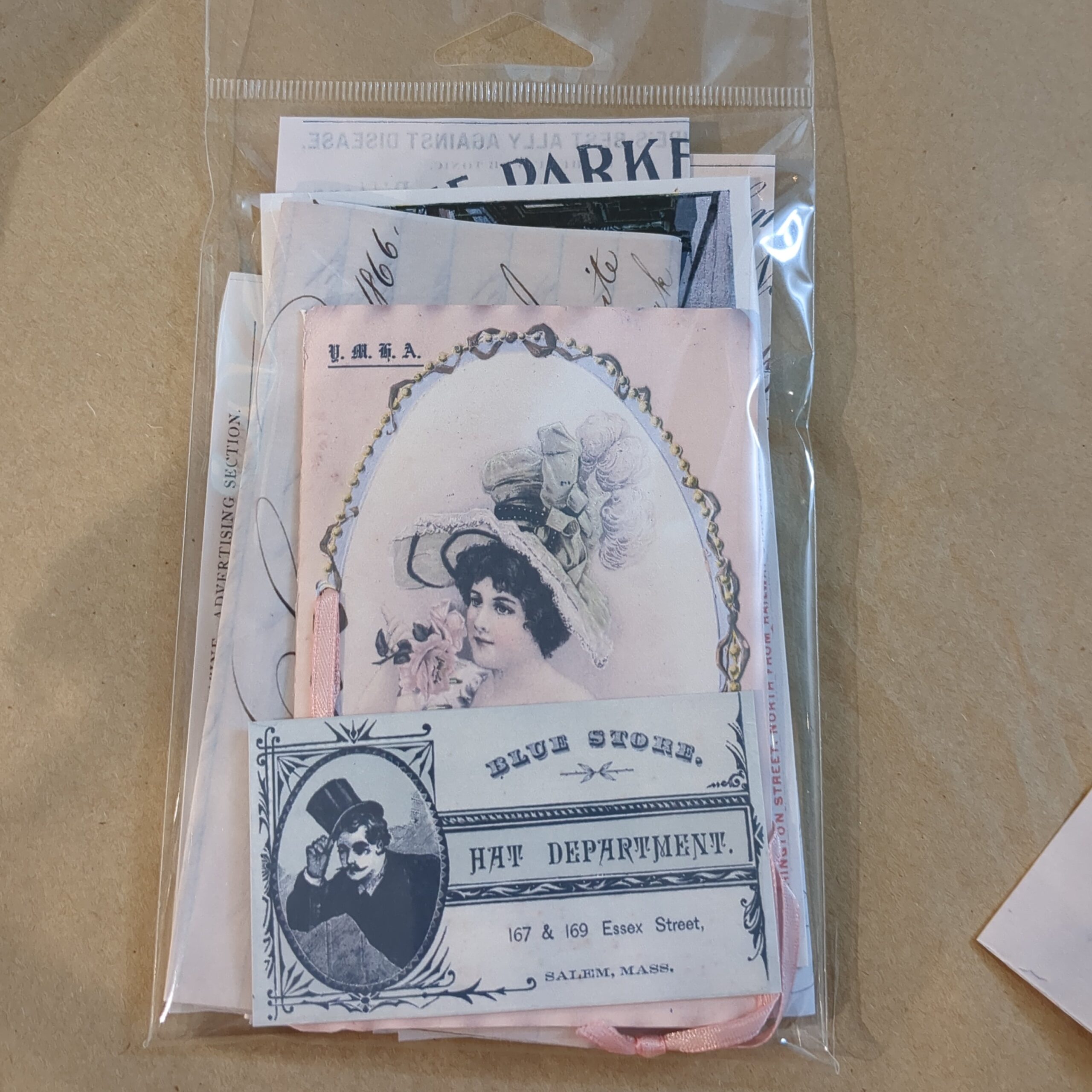 3 letters penned from Salem, 1860sA Salem YMCA Dance Card from 1906, complete with pages of advertisements and the dances performed, tied with a pink ribbon.A postcard of a bustling 1900s Washington Street, SalemAn advertisement card for hats on Essex Street, SalemAn advertisement for Witch Cream from 1892A Christmas advertisement for Daniel Low & Co., circa 1900sA bank note from Salem, 1900sAn advertisement for Parker Games, 1900sPlummer Hall Performance Program, 1880sAn advertisement brochure for The House of the Seven Gables, Salem, 1920s.