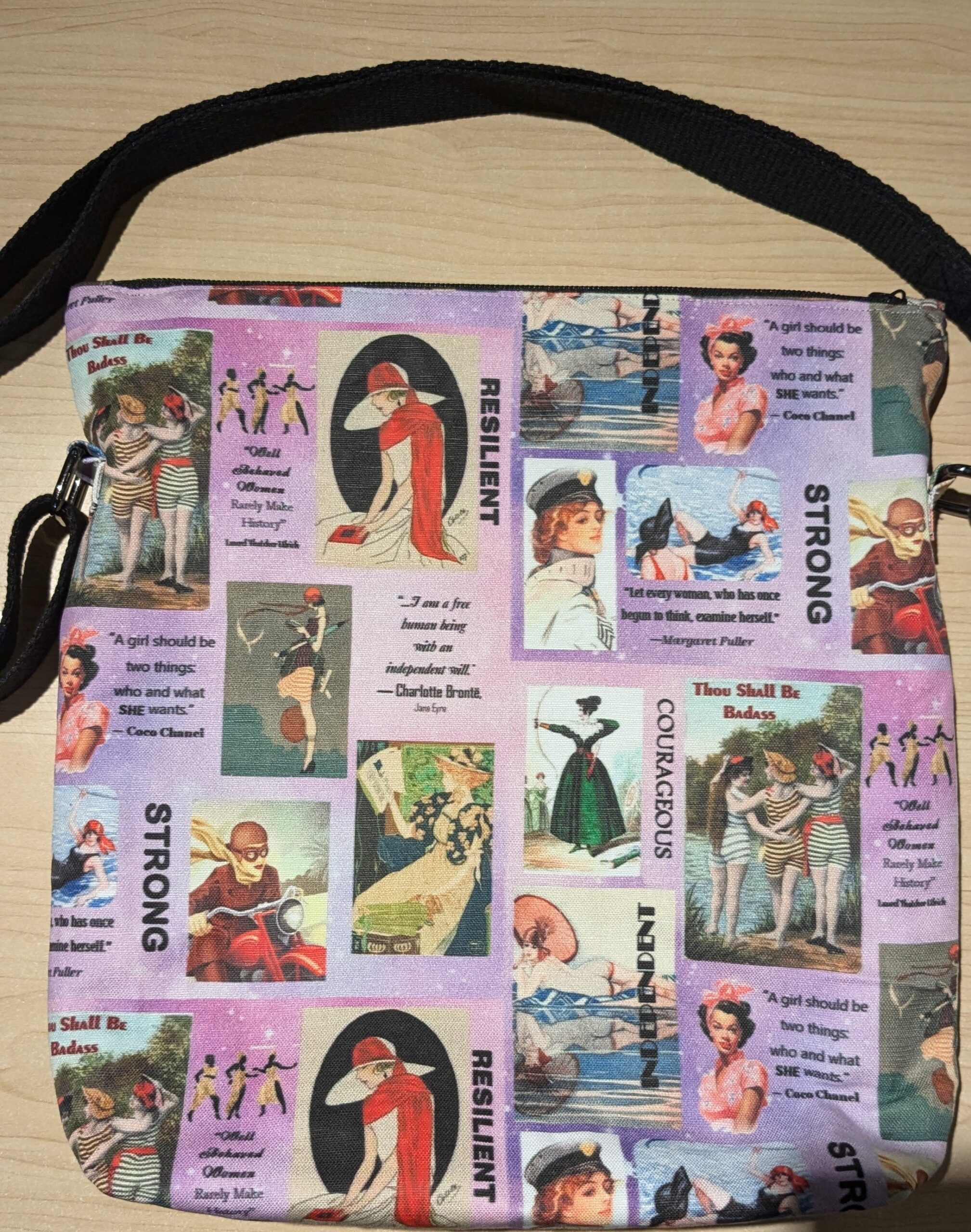With exclusive fabric designed by The Marble Faun and inspired by our favorite images and quotes, this crossbody bag is handmade in Salem.