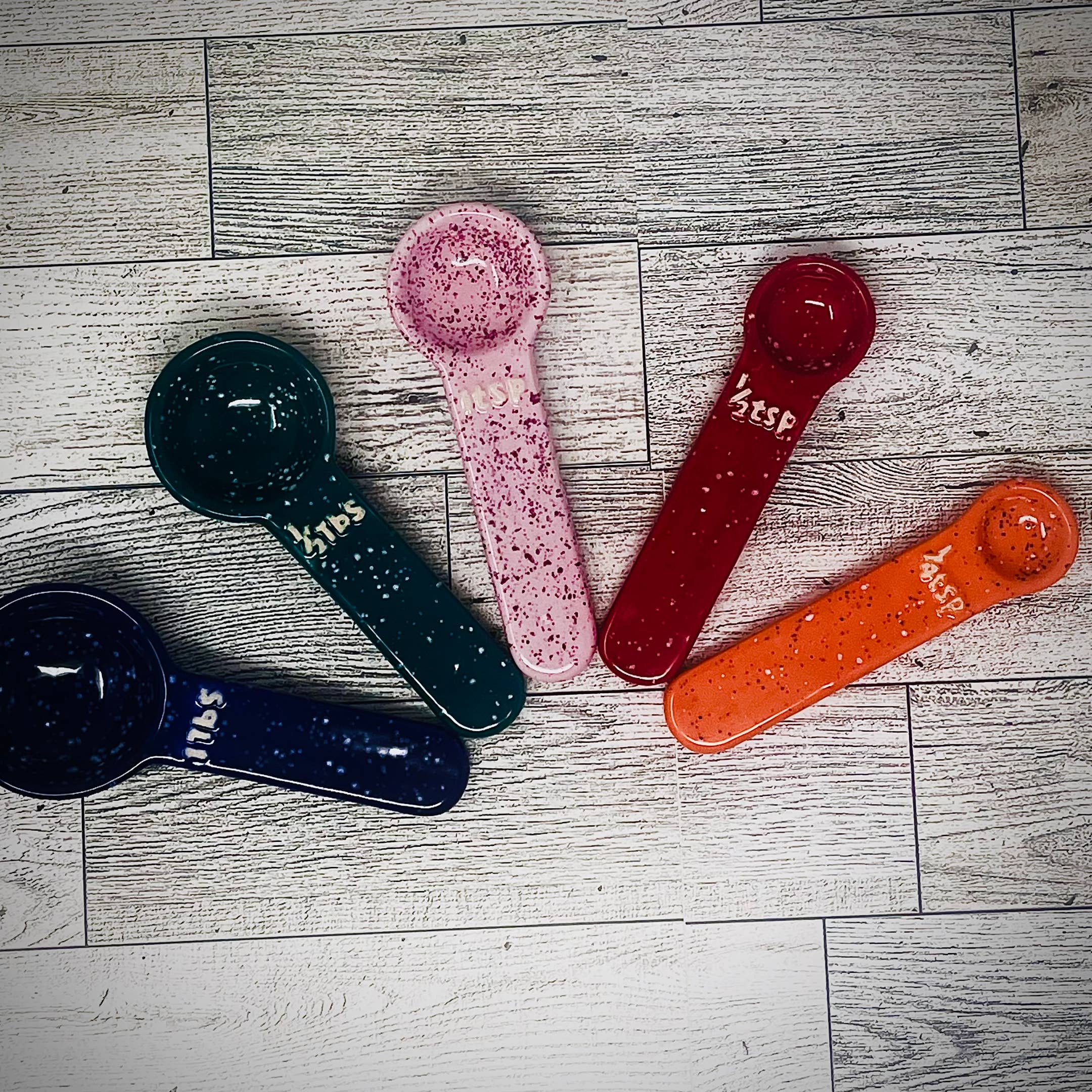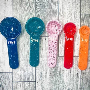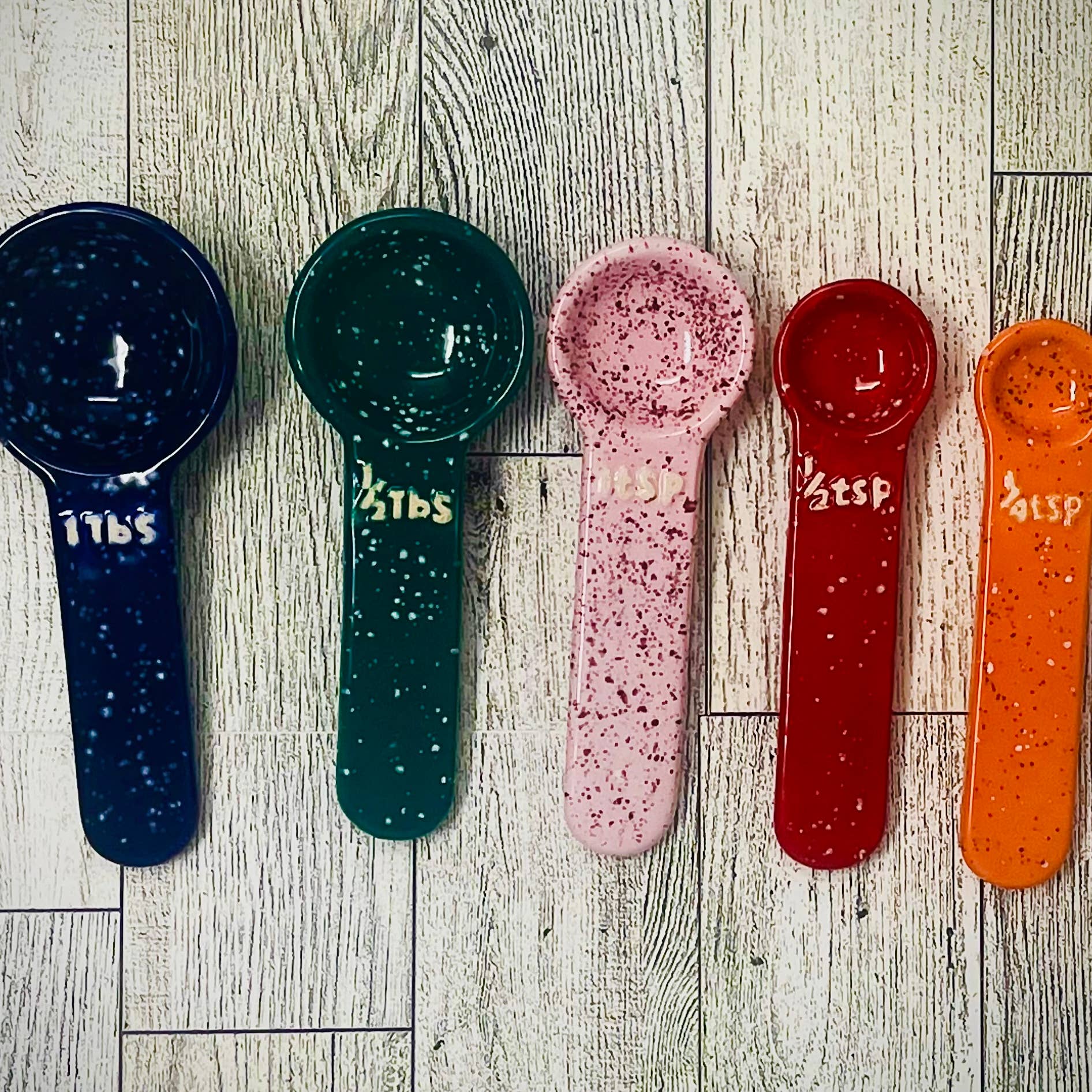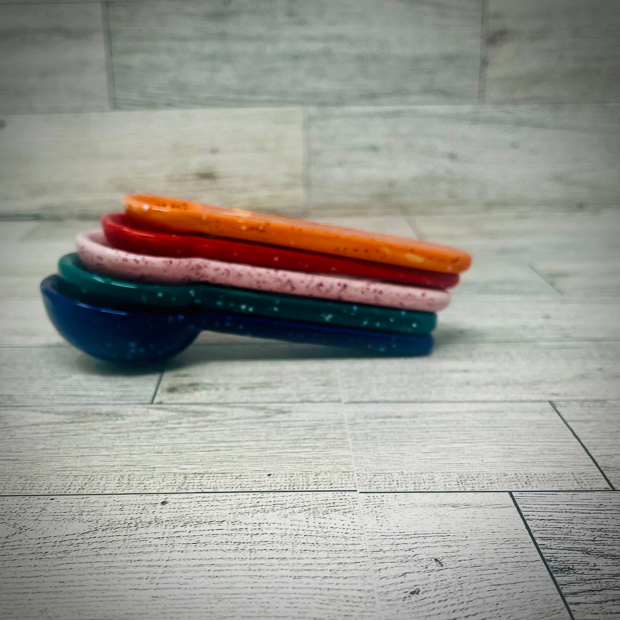 This colorful measuring spoon is a must-have for any kitchen. Made out of clay and hand-painted, it is not only visually appealing but also durable and long-lasting. The spoons have written measurements on the handle of each spoon for easy measurement, making it easy to measure ingredients accurately and precisely.