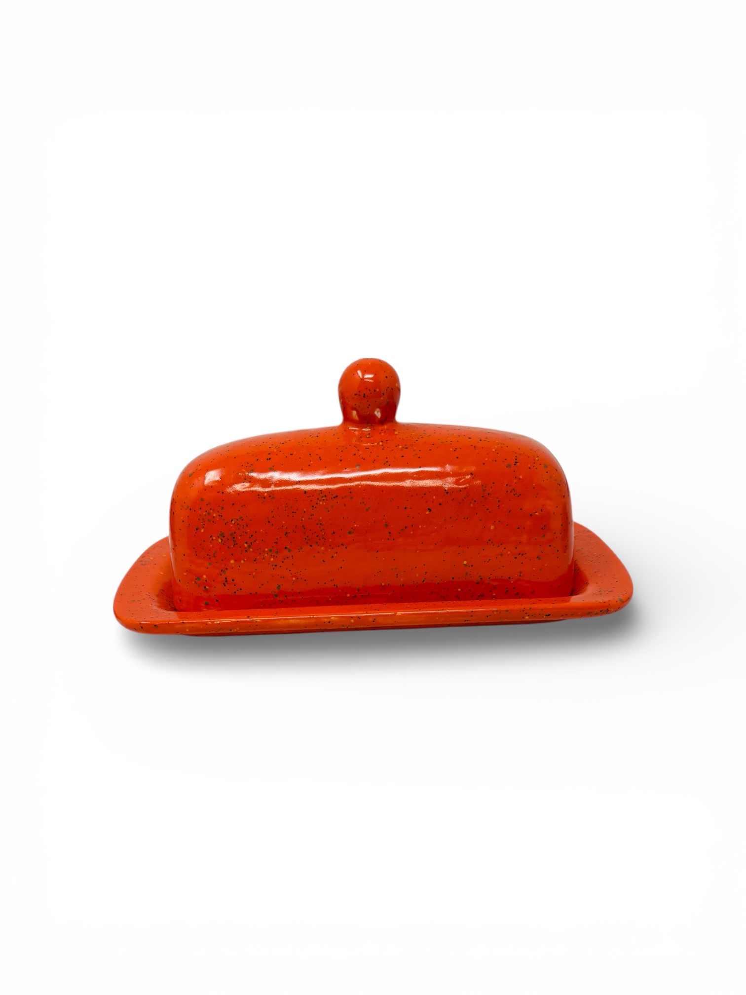 Bring instant personality to your table with our vibrant hand painted butter dish. Every piece is individually painted by hand, making each dish truly unique. The bold color and artisan detail are made to brighten your kitchen, elevate your table setting, and make everyday butter feel extra special. Designed to be both beautiful and functional this butter keeper has plenty of room while still looking refined and compact. Dimensions • 8” long • 3.5” wide • 3.7” high Perfect sizing for standard sticks of butter and perfect for gifting. Durable and easy to care for simply enjoy and wash. Dishwasher safe. Beautiful. Practical. Giftable. A piece that feels joyful every time you use it.