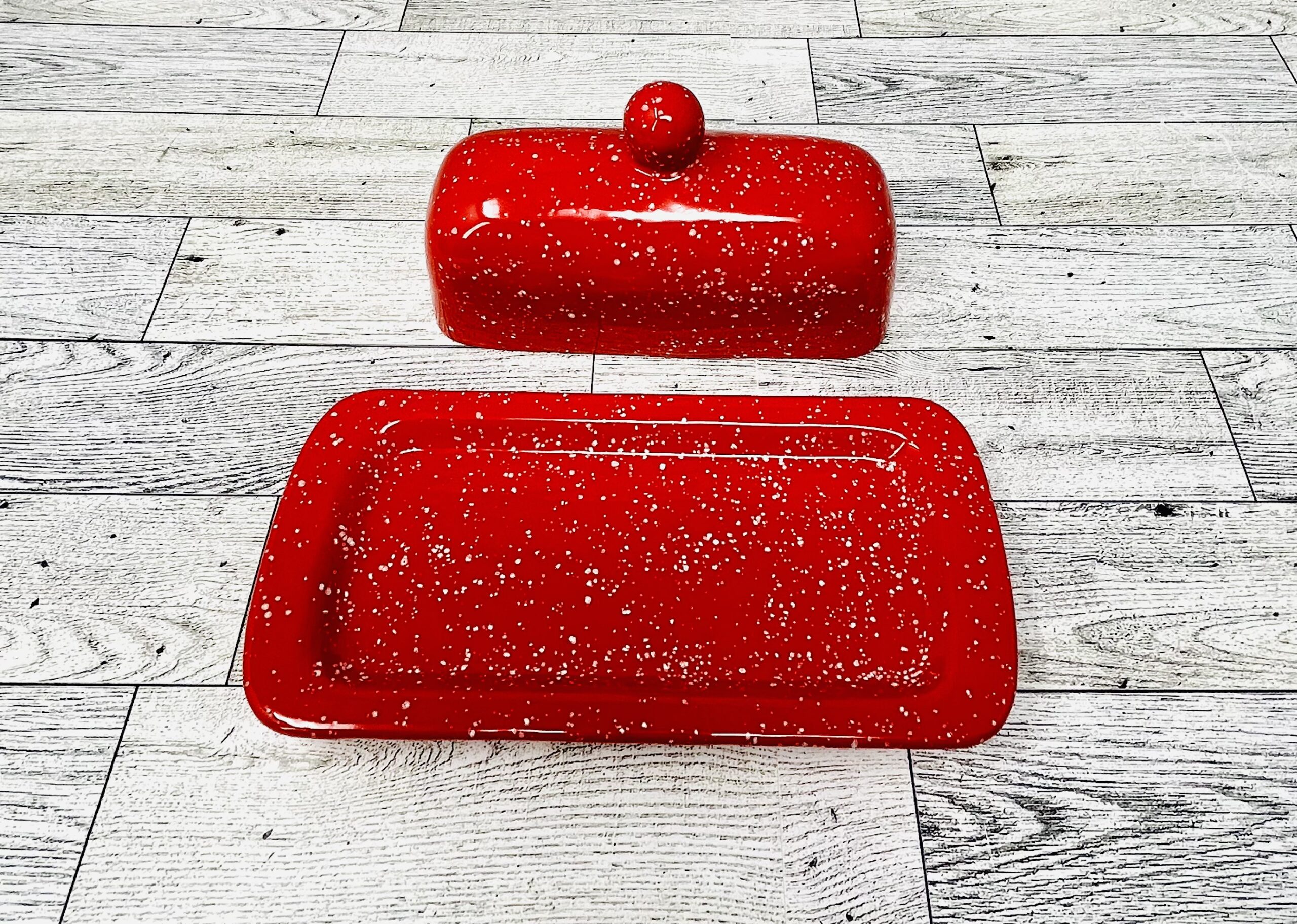 Bring instant personality to your table with our vibrant hand painted butter dish. Every piece is individually painted by hand, making each dish truly unique. The bold color and artisan detail are made to brighten your kitchen, elevate your table setting, and make everyday butter feel extra special.